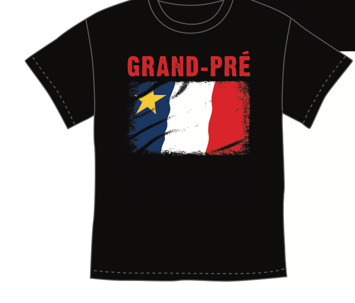 T-Shirt : Acadian Flag Rocks avec écriture Grand-Pré